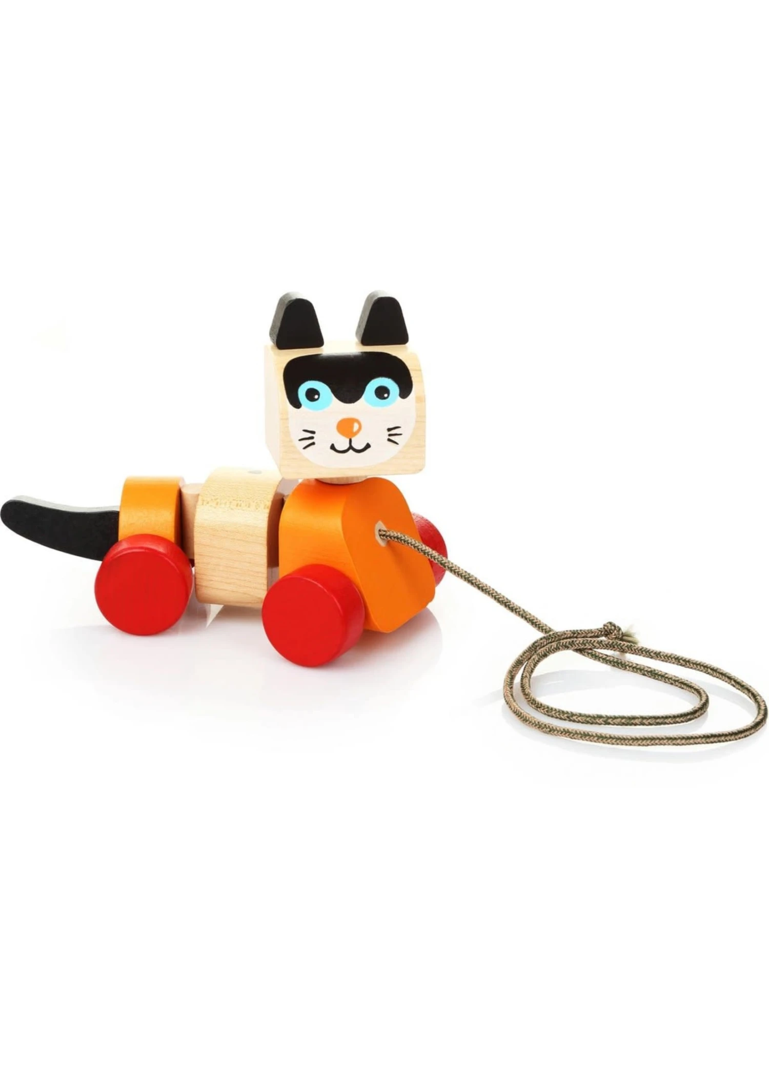 Deze houten kat hobbelt gezellig achter je aan als je op ontdekkingstocht gaat. Het trekfiguur stimuleert de ontwikkeling van coördinatie, balans en spierkracht.Geschikt voor kinderen vanaf 18 maanden.Afmetingen: 11 cm x 8 cm x 16,8 cm