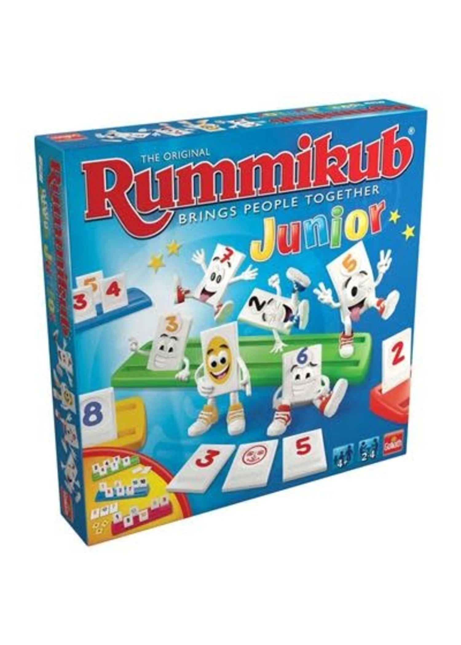Met het Spel Rummikub Junior 19 moeten kinderen proberen te winnen door slimme combinaties met cijfers te leggen. Degene die als eerst al zijn cijfers weg heeft gespeeld, wint! Spel Rummikub Junior 19 is geschikt voor 2 tot 4 spelers vanaf 4 jaar. Â