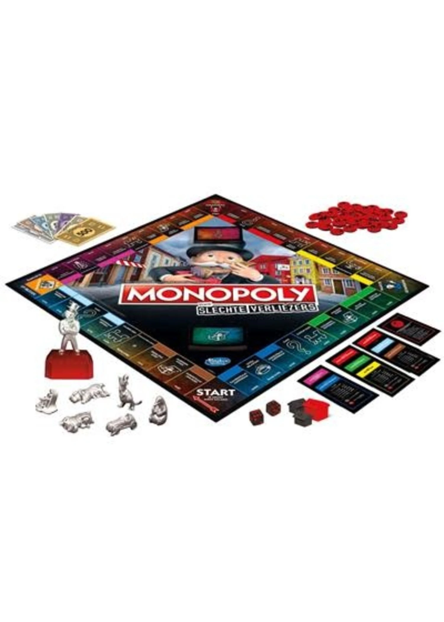 Monopoly voor Slechte Verliezers is een spel waarbij de slechtste speler de winnaar is. Hoe slechter je speelt, hoe meer voordelen je krijgt. De meest slechte speler krijgt een speciale pion die allerlei voordelen met zich meeneemt.