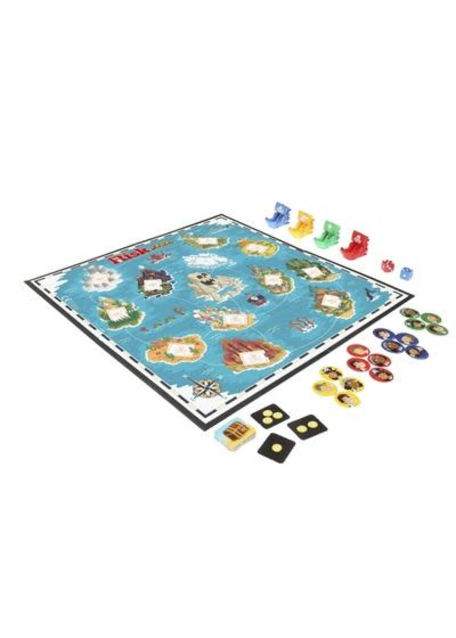 Word de meest gevreesde piraat van de zeven zeeën in het Spel Risk Junior Ahoi maatjes! In dit leuke spel wordt met een bootje over het bord ‘gevaren’. De controle over de eilanden moet gehouden worden, terwijl de spelers op zoek gaan naar buit. Wie weet de meeste buit te verzamelen? Kinderen hoeven niet te kunnen lezen om dit spel te spelen. Het is snel in te zetten en kan in minder dan een halfuur gespeeld worden. Inhoud: Speelbord Vier scheepspionnen Twee dobbelstenen 32 piraten fiches in vier verschillende kleuren Twaalf schatten Spelregels Het Spel Risk Junior is geschikt voor twee tot vier piraten vanaf vijf jaar.