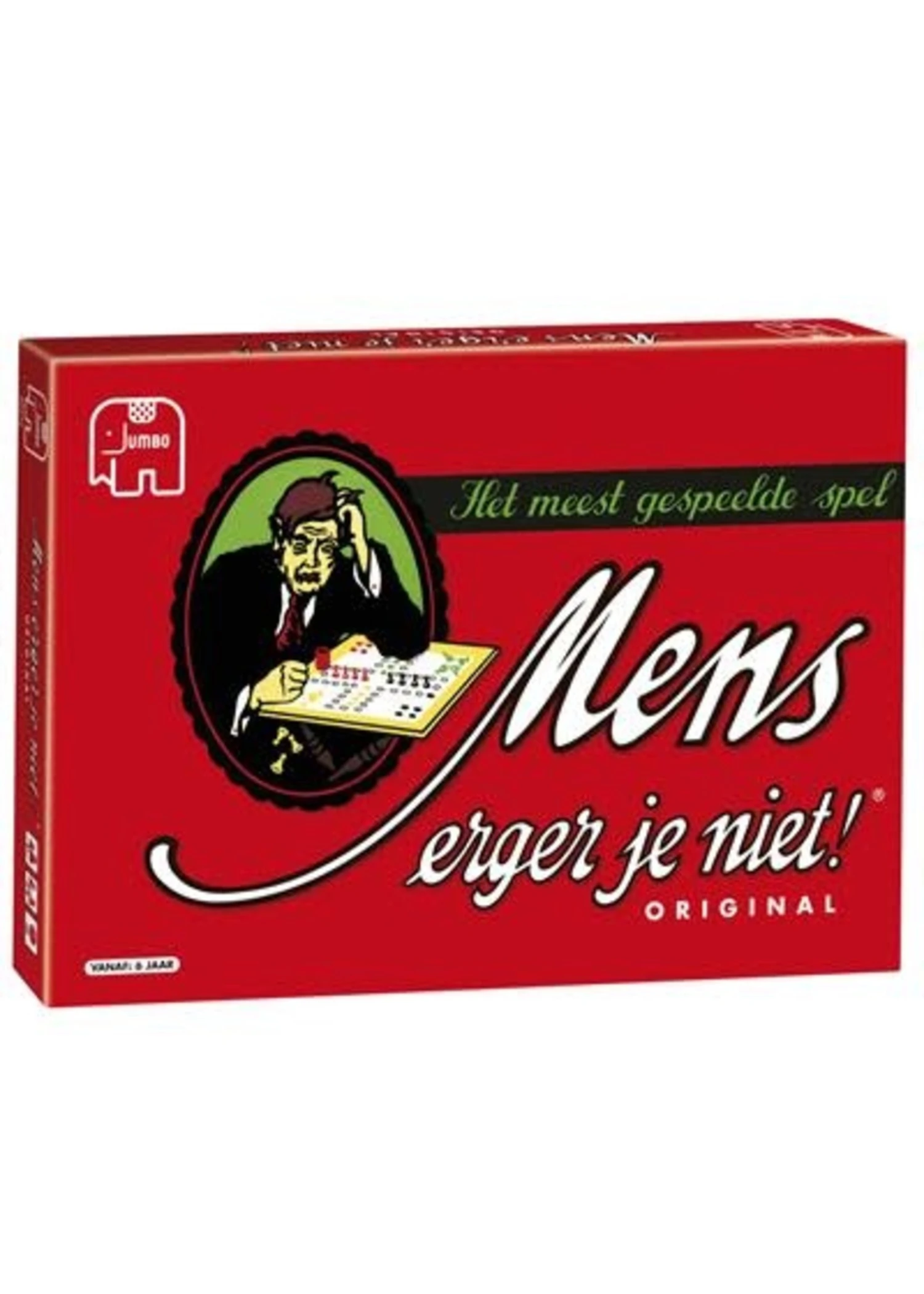 Mens erger je niet Mens erger je niet! Iedereen kent dit meest gespeelde spel wel. Het spel is erg leuk om met z’n tweeën te spelen maar ook leuk om met z’n zessen te spelen! En wanneer je niet kan winnen; mens erger je niet! Het speelbord is aan twee kanten bedrukt: één kant voor 2-4 spelers en een kant voor 2-6 spelers. Inhoud Spelbord 24 houten pionnen Houten dobbelsteen Spelregels Mens erger je niet is geschikt voor 2 tot 6 spelers vanaf zes jaar. Â