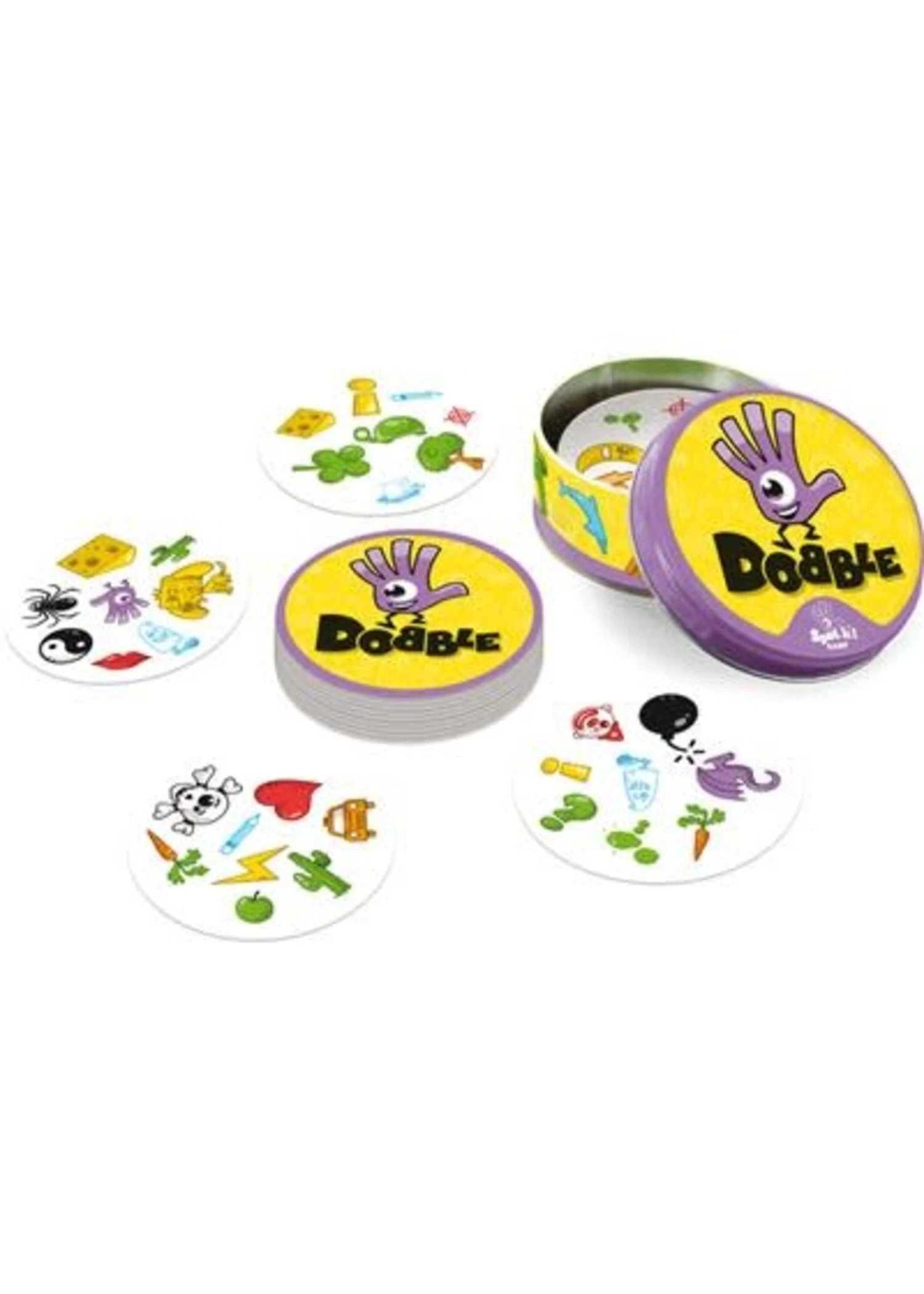 Dobble is een snel kaartspel waarbij spelers tegelijkertijd op zoek gaan naar 1 identiek symbool tussen twee verschillende kaarten. Snelheid, observatie en reflexen zijn van groot belang!