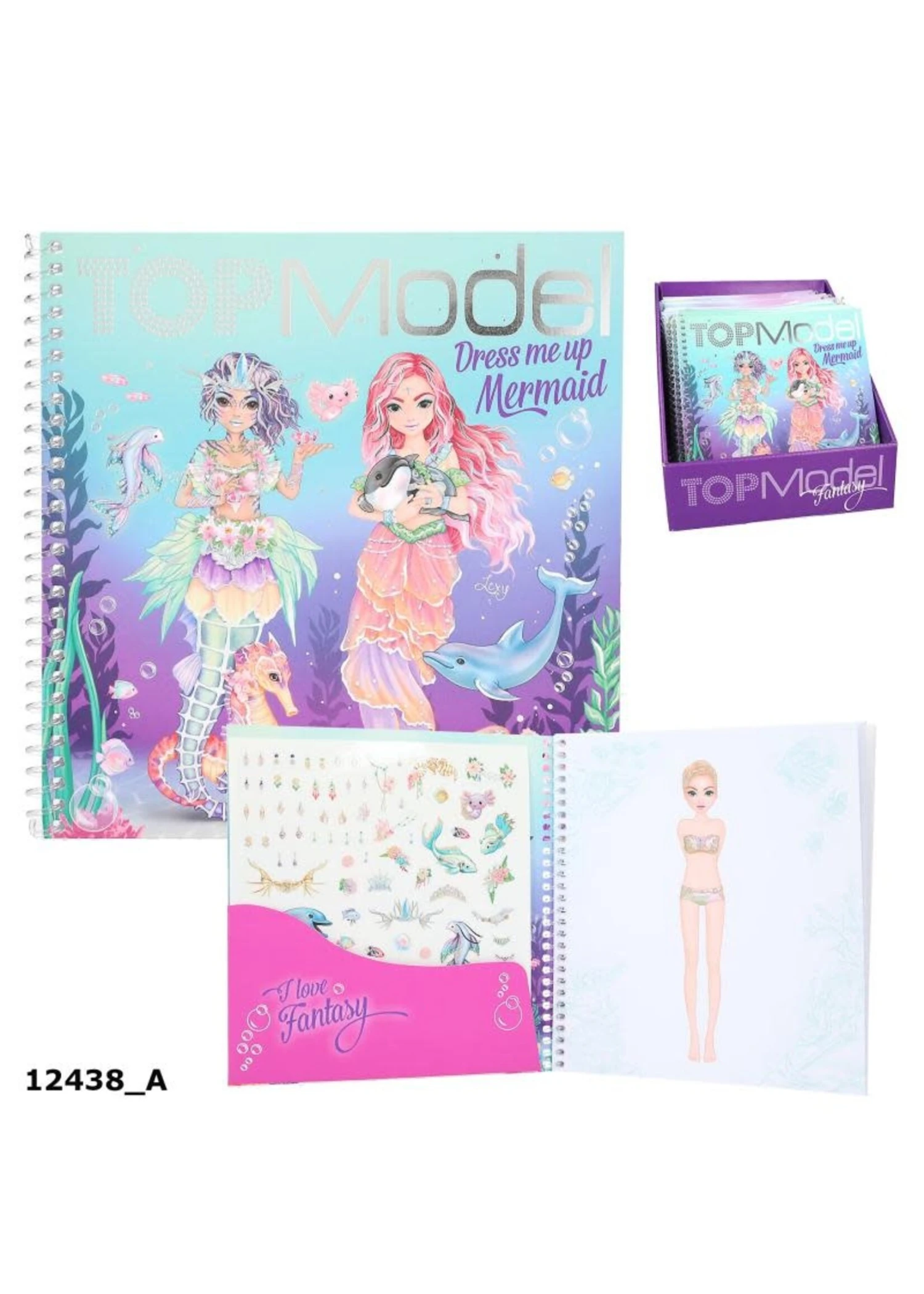 Onderduiken en stickers plakken: in het nieuwe TOPModel stickerboek Dress Me Up Mermaid staan heel veel fantastische zeemeerminnen motieven en schattige zeebewoners. 24 pagina’s om te beplakken, 11 stickervellen en een handige spiraalbinding.